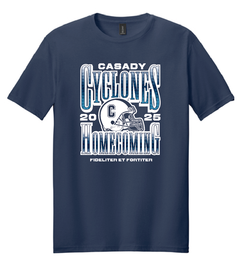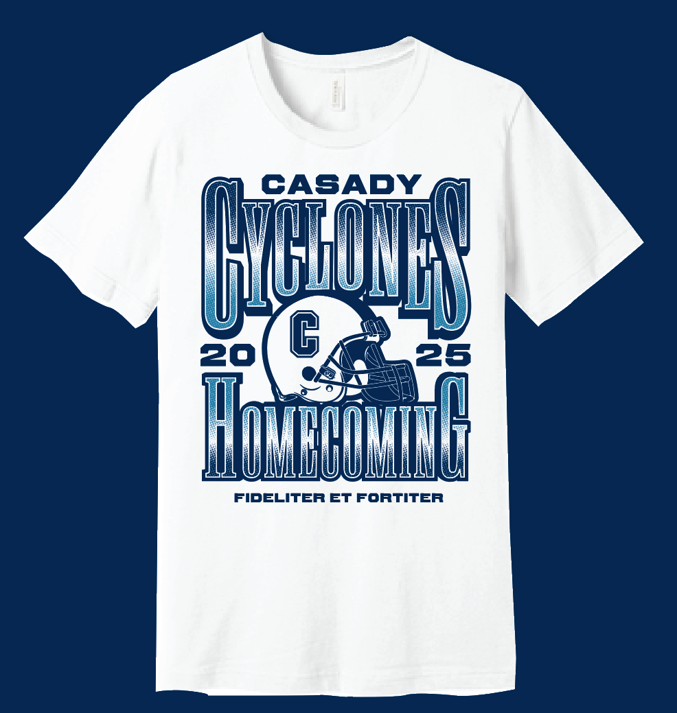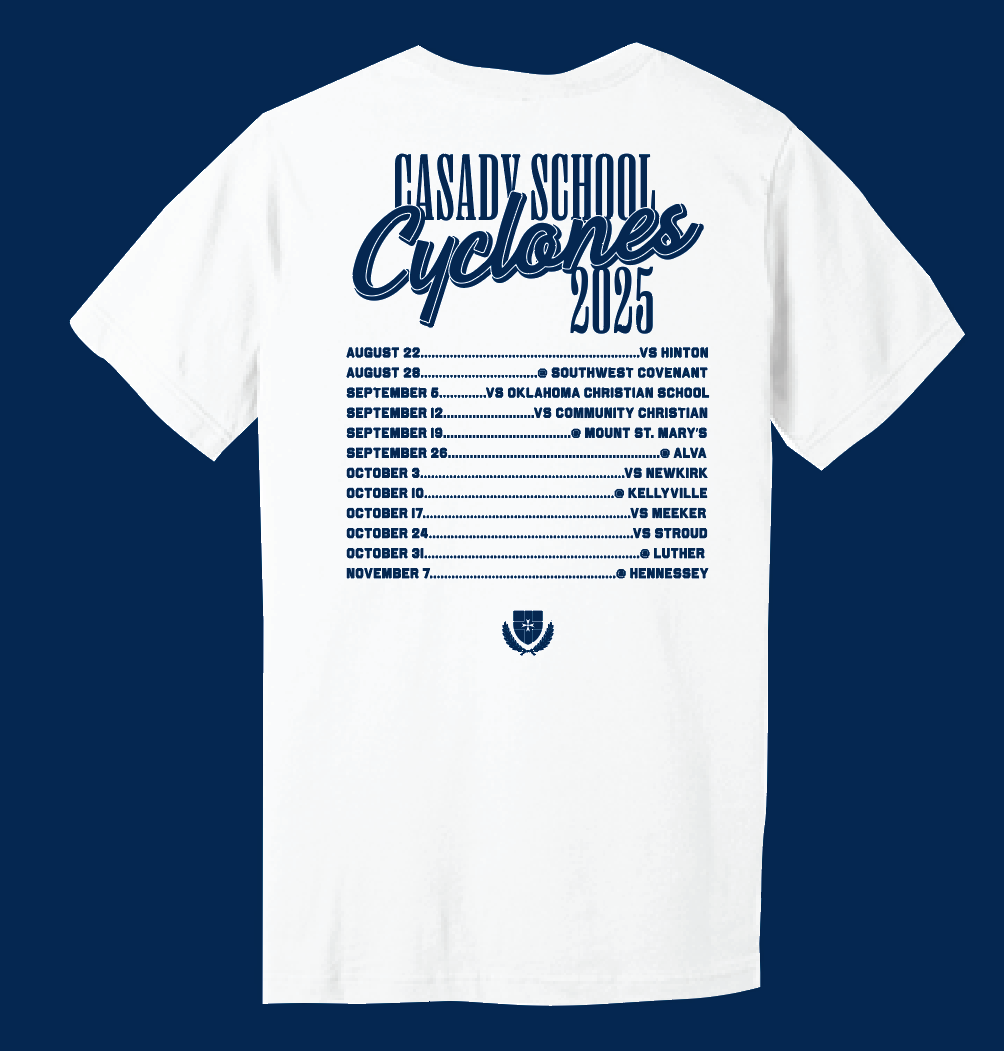 The Casady Homecoming 2025 tee supports the Upper Division Student Council. Features the football schedule on the back!