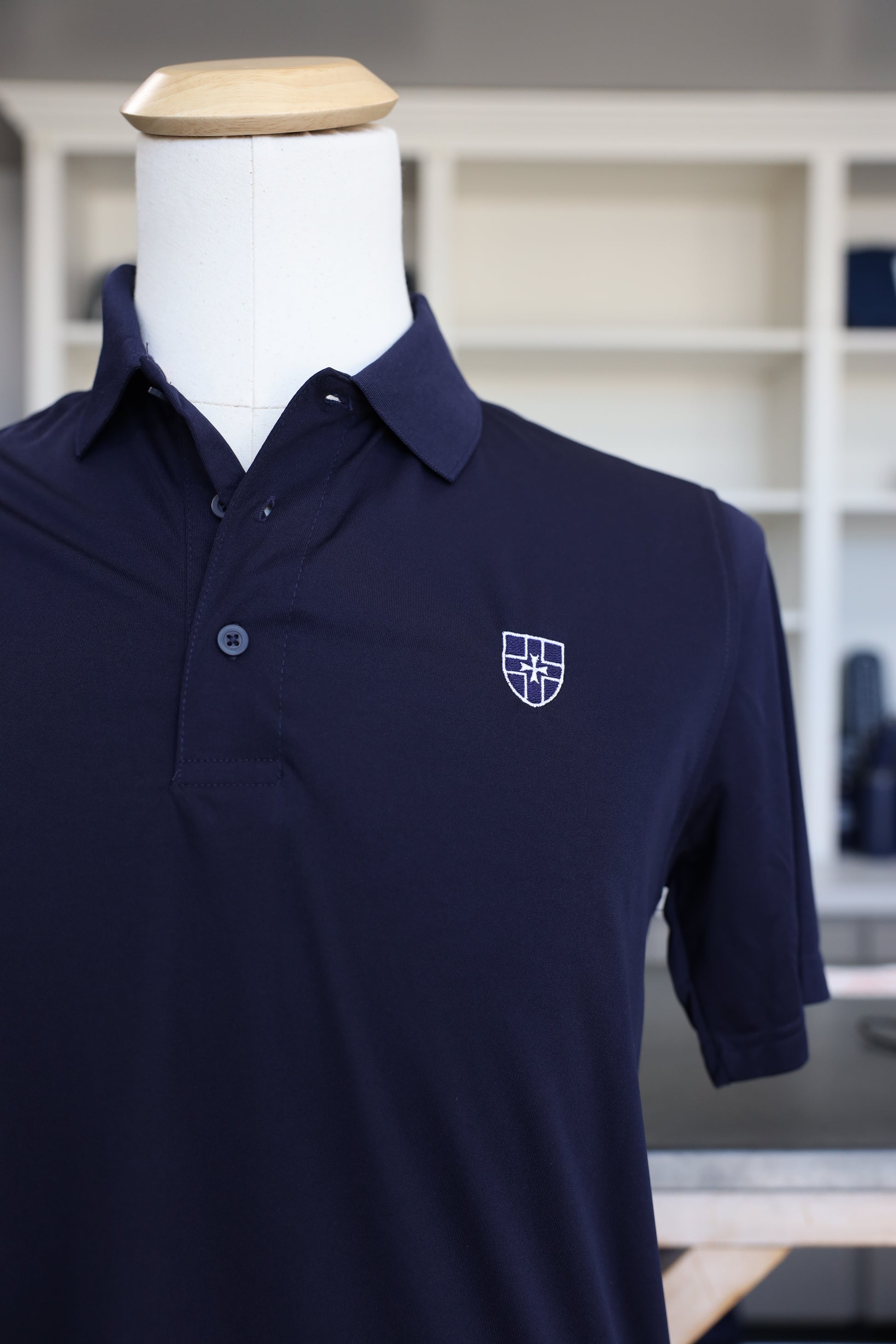 This short sleeve polo shirt wicks away moisture, so your student can stay cool and comfortable. Athletic fit with knit collar and cuffs. Three-button closure with chalk buttons. Side vents. Polyester interlock and machine washable.