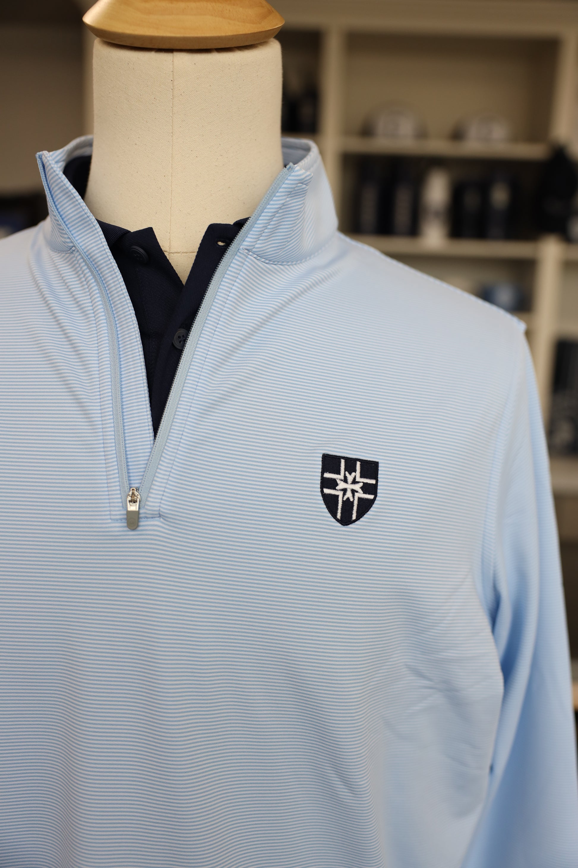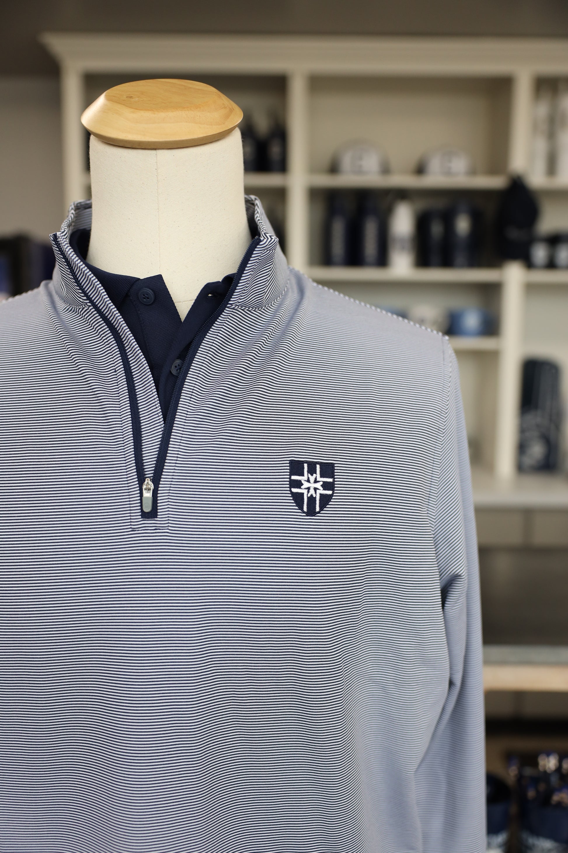 - Quarter-zip with banded cuffs and hem